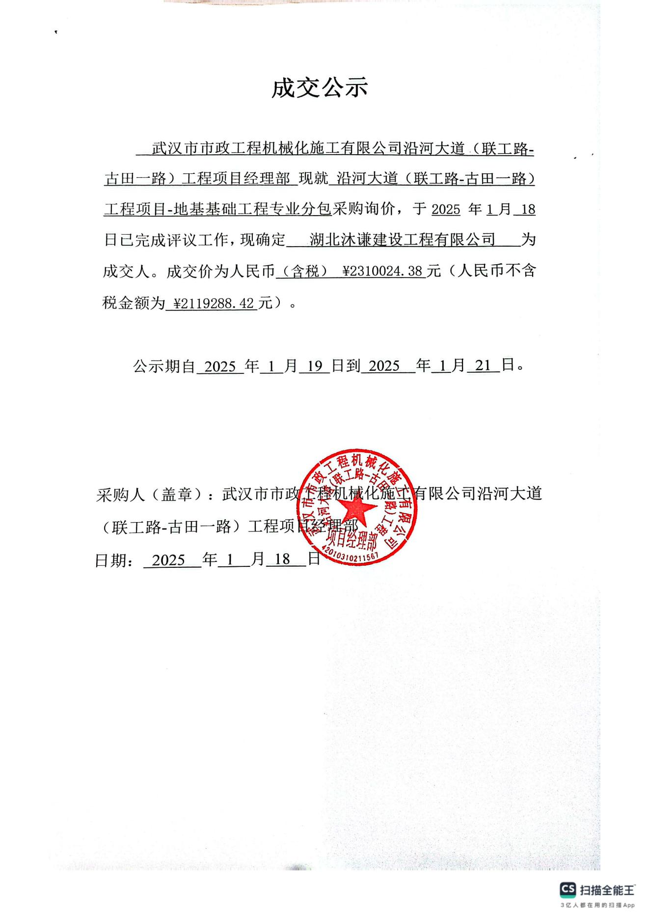 沿河大道(聯工路-古田一路)工程項目-地基基礎工程專業分包成交公示